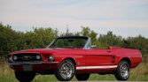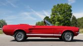 Here is a beautiful 1967 Ford Mustang convertible. This rust free Pony is powered by a rebuilt 289 making 302 horsepower! The red paint is exceptional. White power top is in great shape, the red interior has held up well. The seats are in great shape with buckets and center console. Well equipped with power steering, power convertible top, fog lights and engine dress up kit. New shocks and springs and always garage kept. This is a great…
